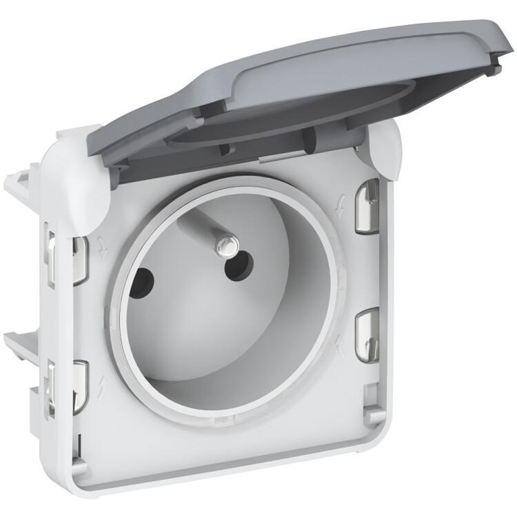 Розетка 2P+E франц.стандарт со шторками безвинт. зажим серый IP55 Plexo 16А