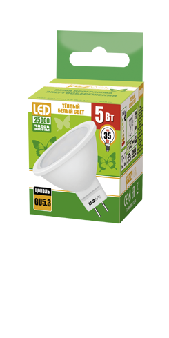 Лампа светодиодная 5 Вт 230В GU5.3 d=51mm, термопластик, тёплый белый
