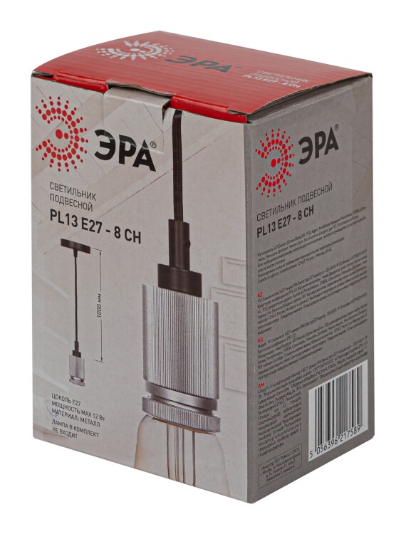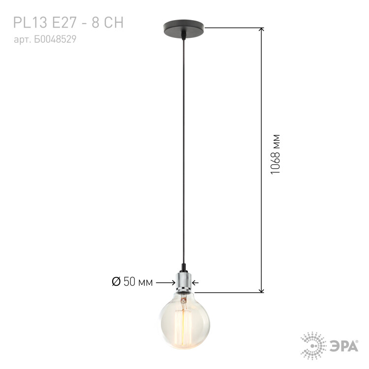 Патрон PL13 E27-8 CH Накладной, Е27, провод 1м, хром