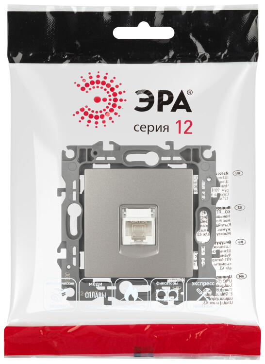 Розетка ЭРА Серия 12 12-3107-16 информационная RJ45, титан