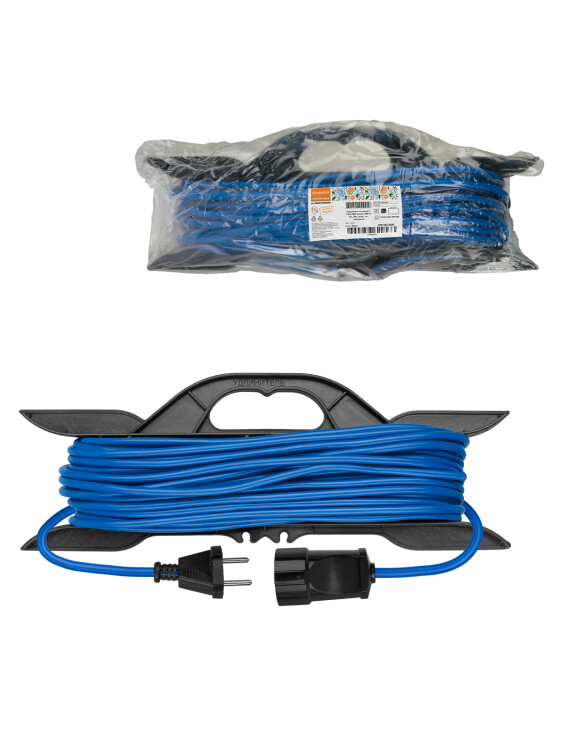 Удлинитель-шнур на рамке силовой У-11001 ПВС синий 1300 Вт б/з, 20м, штепс. гнездо Народный