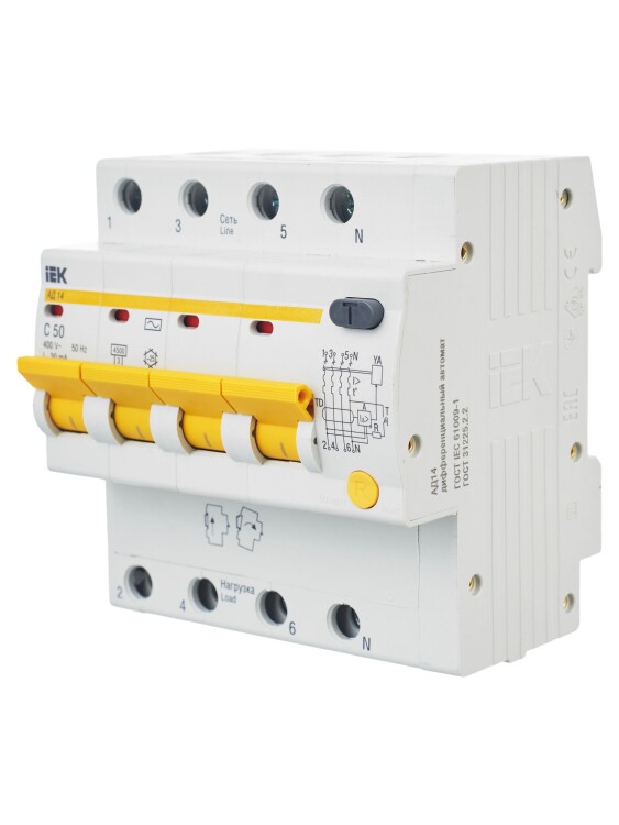 Автомат. выкл. дифф. тока 4-пол. 50А 30мА тип AС 4,5кА хар-ка C серия АД14