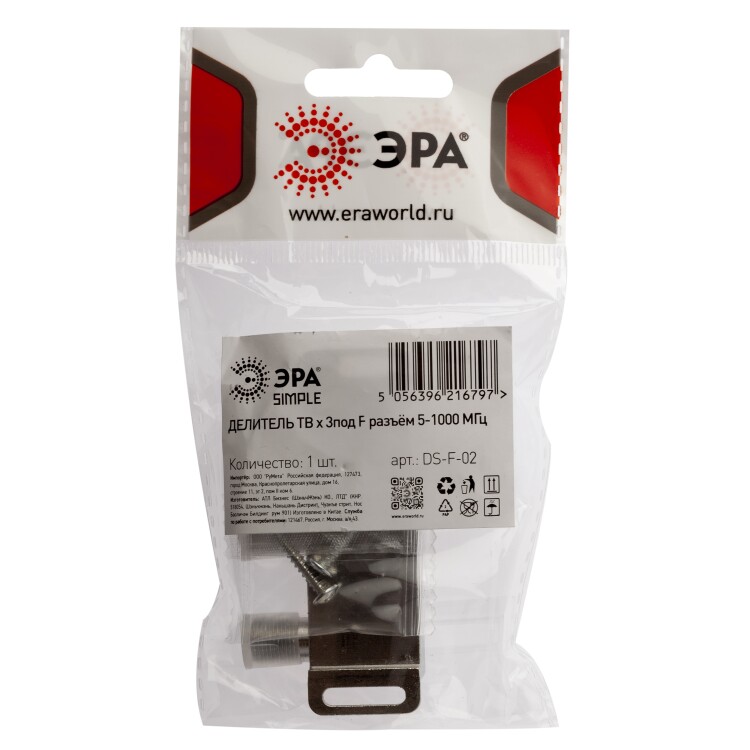 Делитель ТВ ЭРА SIMPLE 3 ответвления под F разъём 5-1000 МГц упаковка 1 шт.