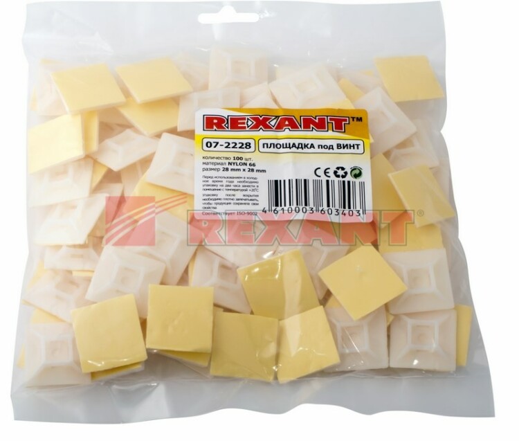 Площадка под винт самоклеящаяся 28x28 мм, белая (100 шт/уп) REXANT