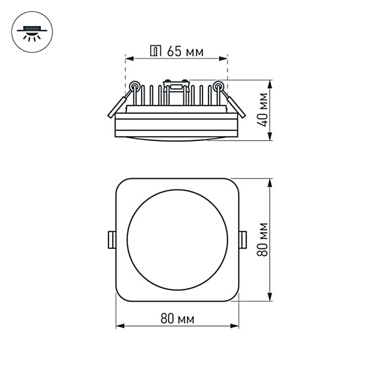 Светильник встр. LED 5Вт 325Лм 3000К IP44 LTD-80x80SOL-BK-5W Warm White 3000K