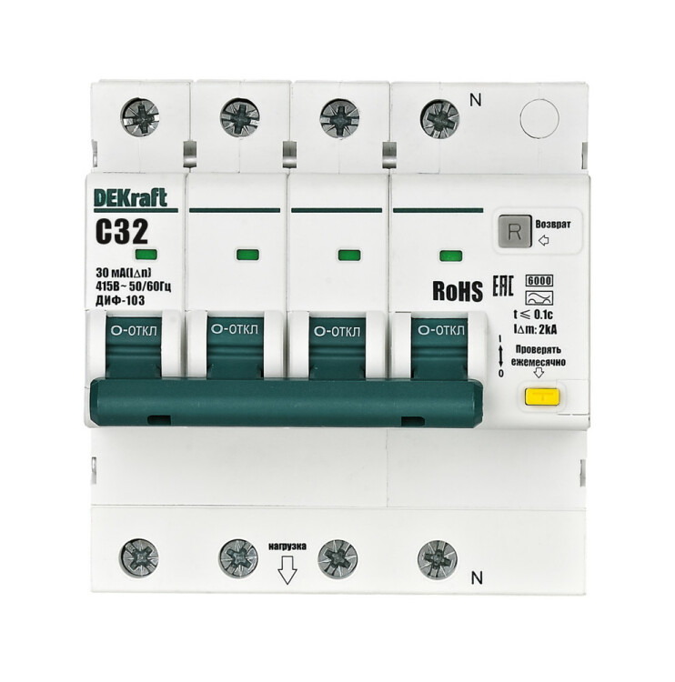АВДТ 3P+N 32А 30мА AC х-ка C ДИФ-103 6кА нов.