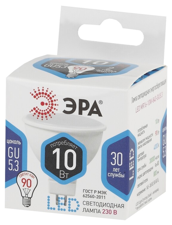 Лампочка светодиодная ЭРА STD LED MR16-10W-840-GU5.3 GU5.3 10Вт софит нейтральный белый свет