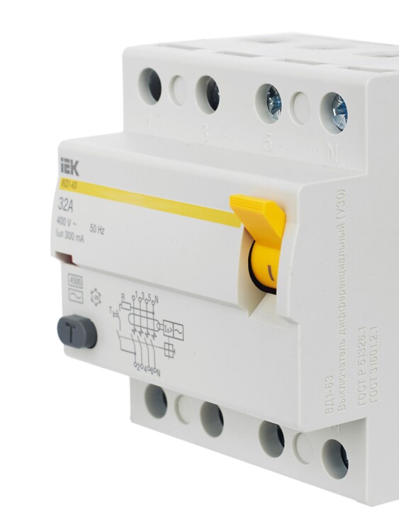 Выключатель дифференциальный ВД1-63 (УЗО) 4Р 32А 300мА ИЭК