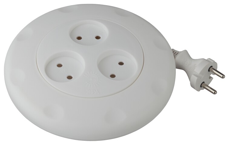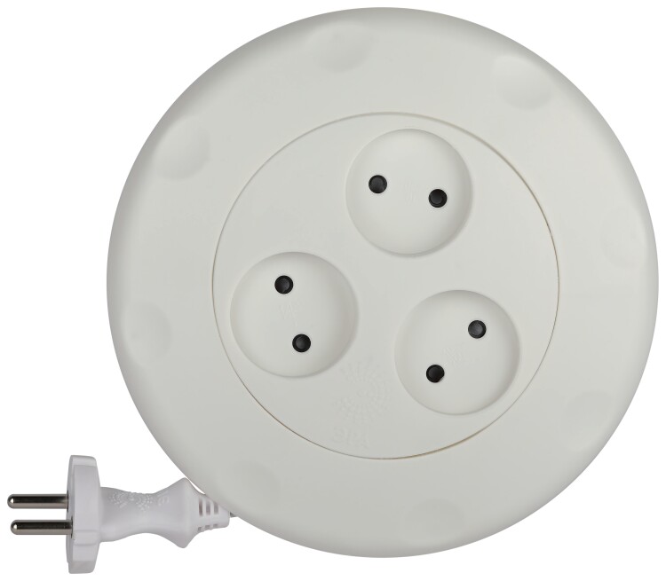 Удлинитель, 3 розетки, длина 3 м, 10А, ПВС 2х0.75 мм?, б/з, IP20, полипропилен, белый, рулетка, UR-3-3m-W