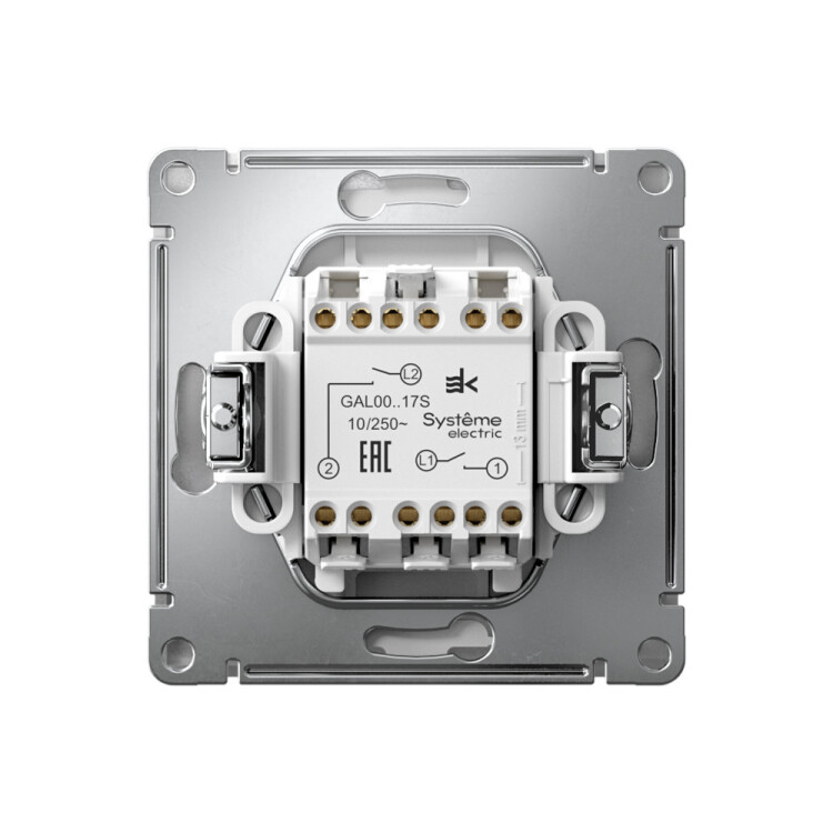 ARTGALLERY 2-клавишный ВЫКЛЮЧАТЕЛЬ КНОПОЧНЫЙ, 10АХ, механизм, быстрозажим. клем., АЛЮМИНИЙ