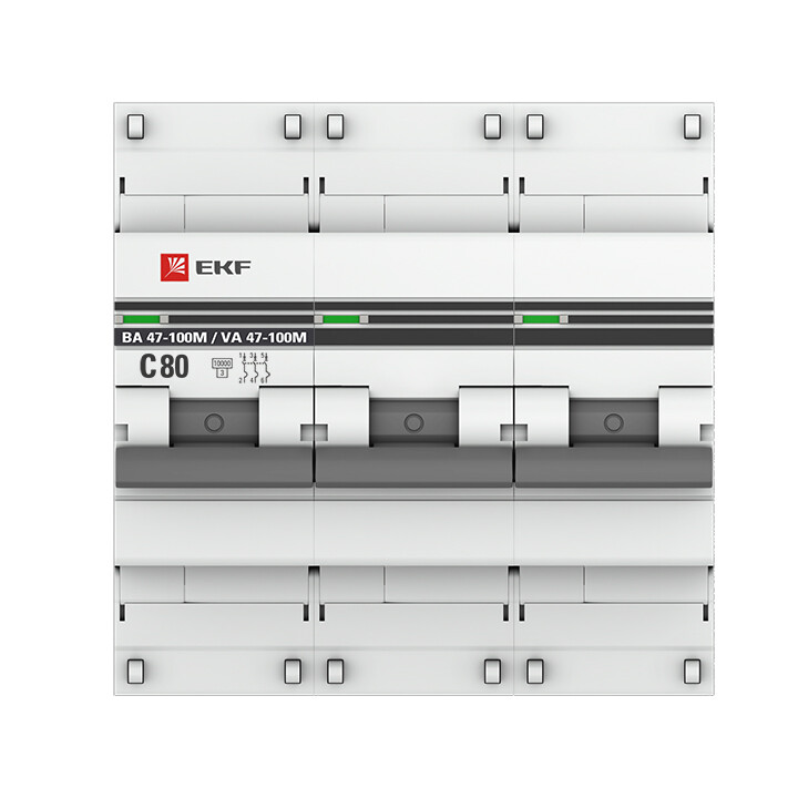 Автоматический выключатель 3P 80А (C) 10kA ВА 47-100M без теплового расцепителя EKF PROxima