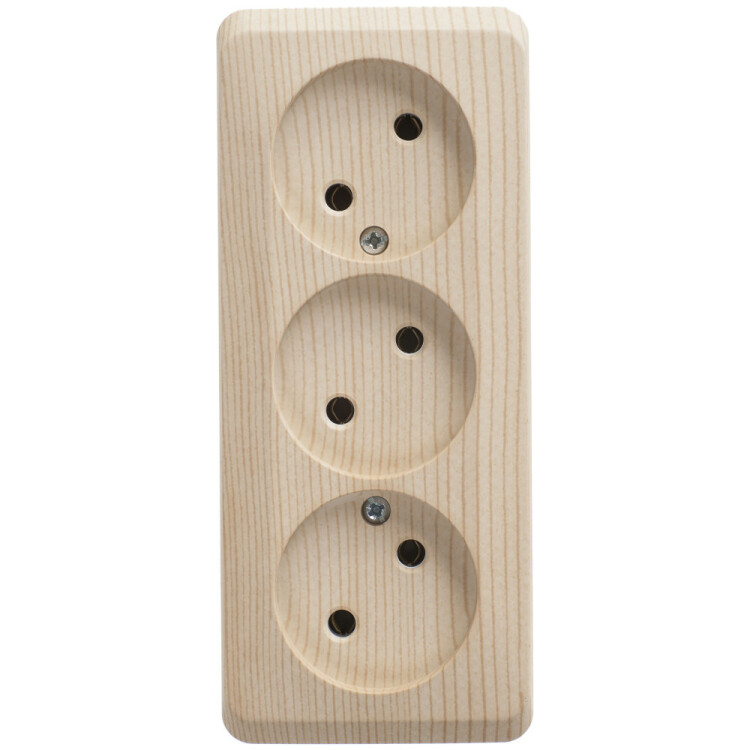 ЭТЮД О/У тройная РОЗЕТКА без заземления без шторок 16А 250В, СОСНА, Россия