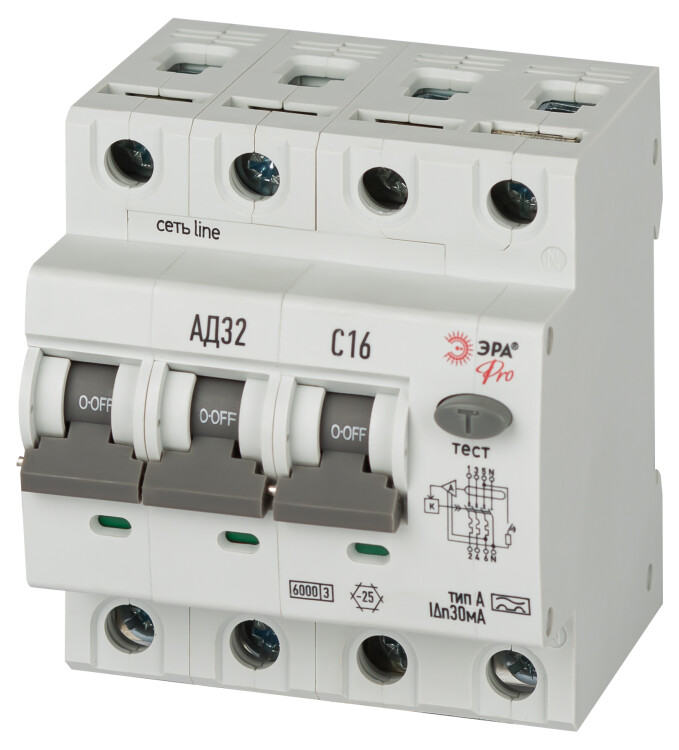 АВДТ 6кА ЭРА PRO D326E4C16A30 АД-32 электронное 3P+N C16 30мА тип A
