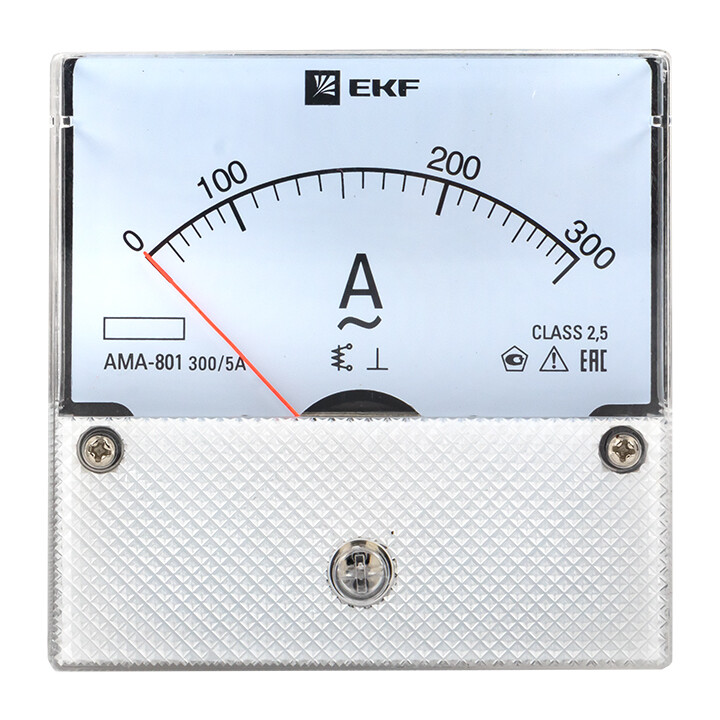 Амперметр AMA-801 аналоговый на панель (80х80) круглый вырез 300А трансф. подкл. EKF