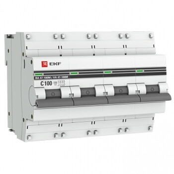 Автоматический выключатель 4P 100А (C) 10kA ВА 47-100M без теплового расцепителя EKF PROxima