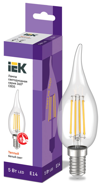 Лампа светодиодная CВ35 свеча на ветру прозрачная 5Вт 230В 3000К E14 серия 360° IEK