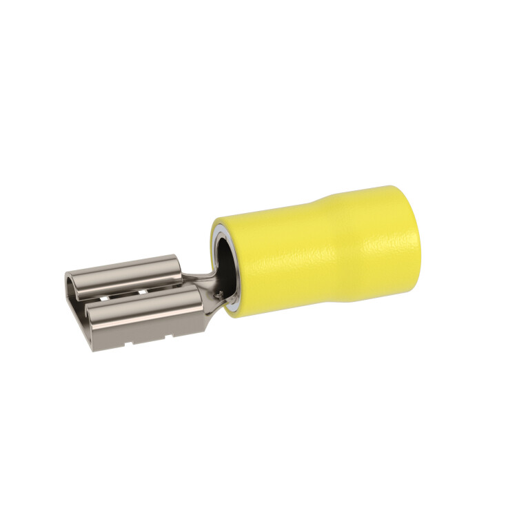 Наконечник-разъем плоский, розетка 6.3x0.8, изолированный фланец, для кабеля сечением до 6.0кв.мм