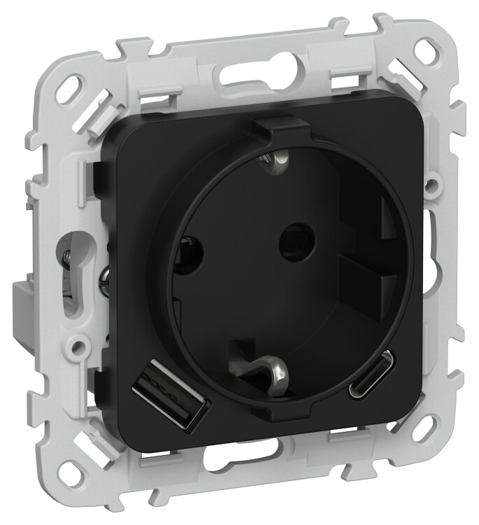 Розетка 2P+E с USB A+C РСЮшс11-0-ФлЧ черный FLITE