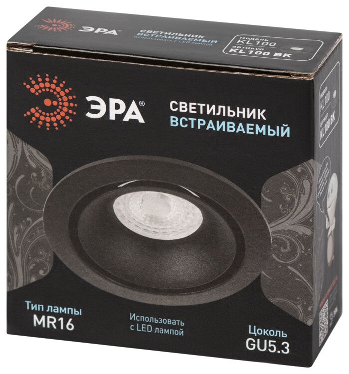 Встраиваемый светильник алюминиевый ЭРА KL100 BK MR16 GU5.3 черный