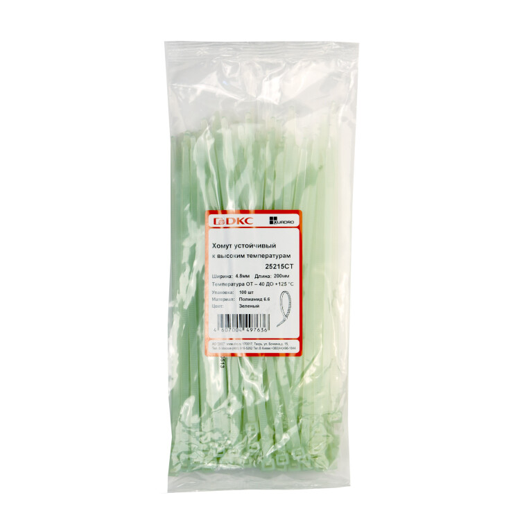 Хомут кабельный (стяжка) 200ммx4.8ммx4.8мм с внутр. зубчатым зацеплением пластик зеленый макс.d охвата50мм DKC