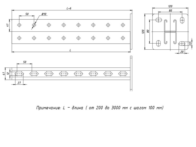 Консоль для крепления к стене и/или в профиль 2300x120x120 сталь оцинкованное цвет серый EKF EKF-Line