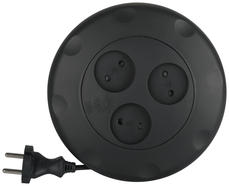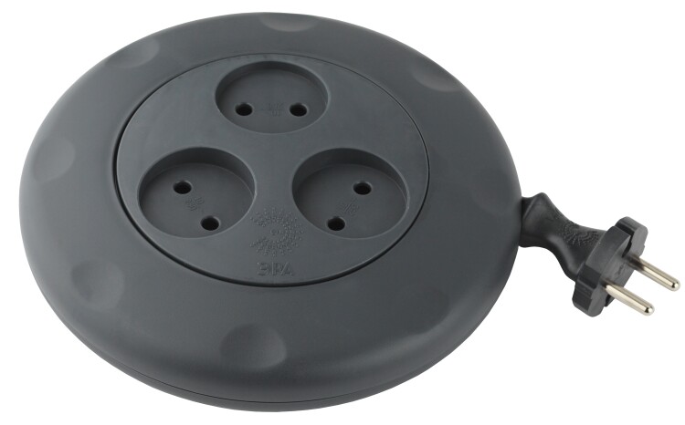 Удлинитель, 3 розетки, длина 3м, 10А, ПВС 2х0.75 мм?, б/з, IP20, полипропилен, чёрный, UR-3-3m-B