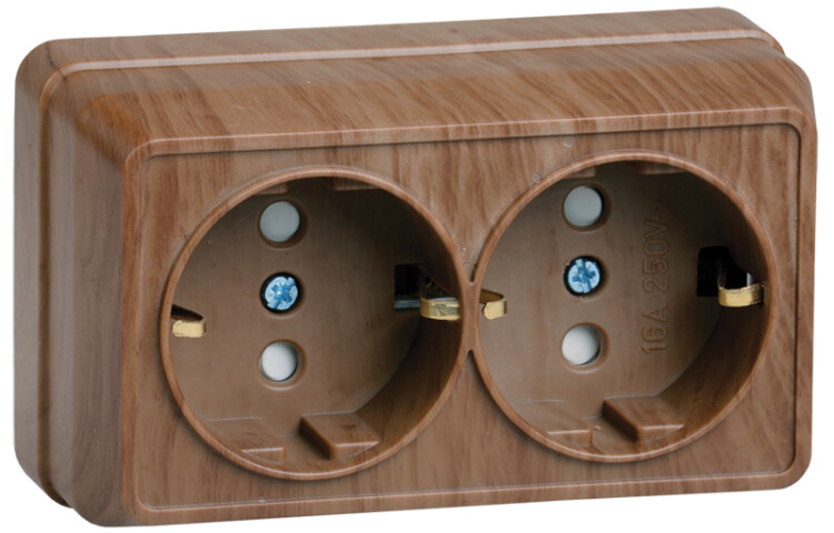 OKTAVA Роз. 2-мест. с з/к/ш о/у 16А РСш22-3-ОД дуб IEK