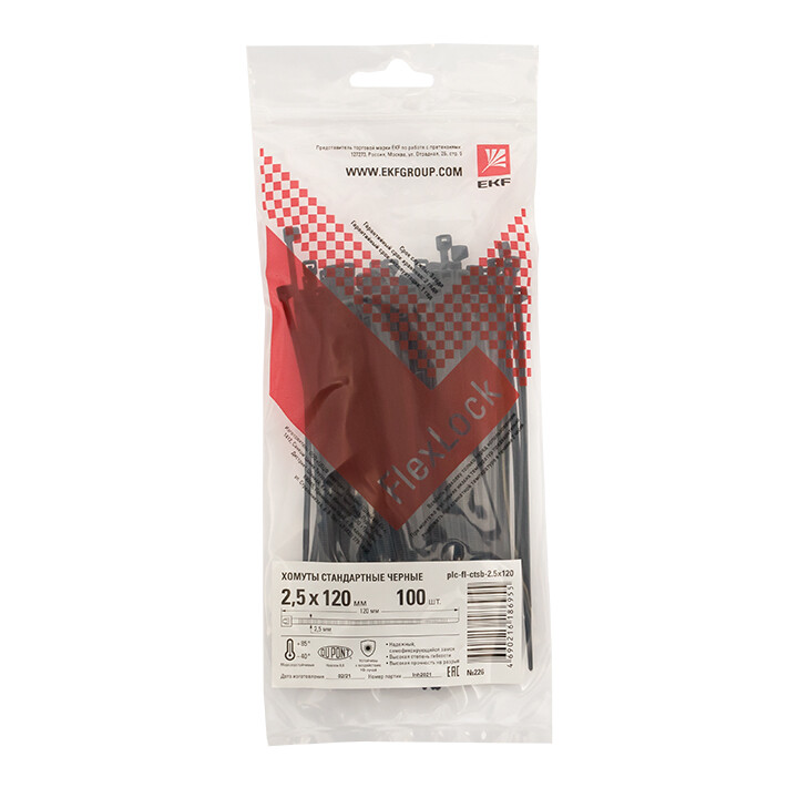 Хомут кабельный (стяжка) 120ммx2.5ммx1мм с внутр. зубчатым зацеплением пластик черный макс.d охвата27мм EKF