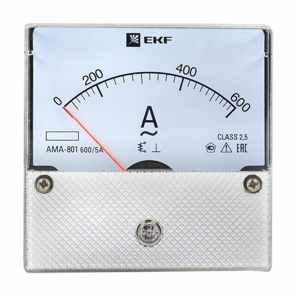 Амперметр AMA-801 аналоговый на панель (80х80) круглый вырез 600А трансф. подкл. EKF