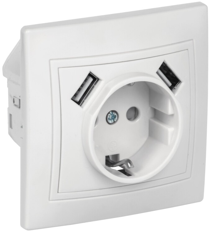 KVARTA Роз. с з/к/ш 16А USBх2 2,1А РЮш10-1-КБ бел. IEK