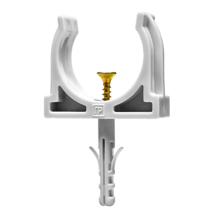 Крепеж-клипса с дюбелем и саморезом серая д32 в малой упаковке (10шт/450шт уп/кор)
