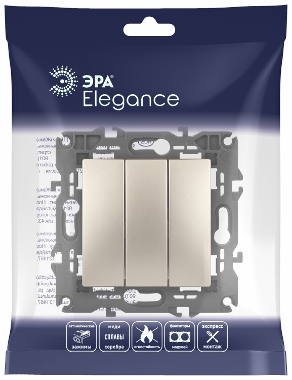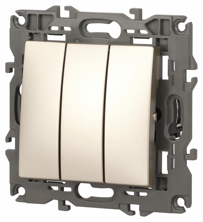 Выключатель тройной, 10АХ-250В, IP20, Elegance, шампань 14-1107-04