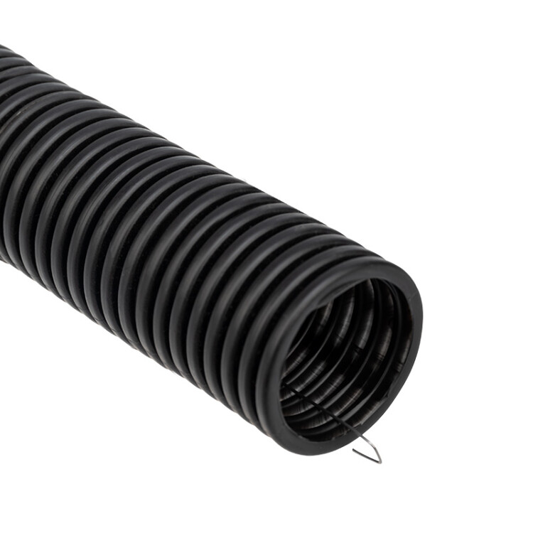 Труба гофрированная из ПНД безгалогенная HF, с зондом, ø32мм, черная (буxта 25 м/уп) REXANT