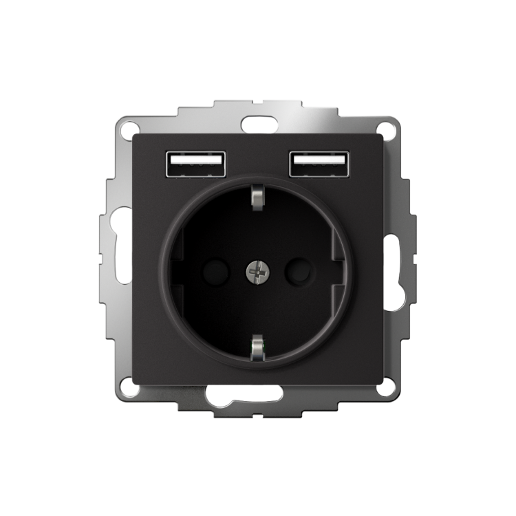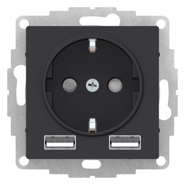 Розетка 2P+E с 2хUSB 5В/2,4А 2х5В/1,2А 16А карбон AtlasDesign