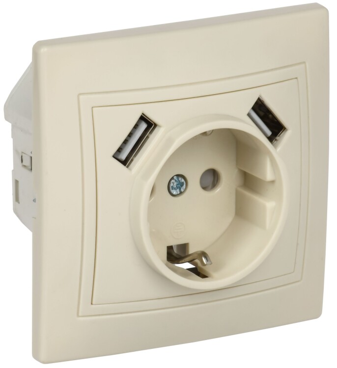 KVARTA Роз. с з/к/ш 16А USBх2 2,1А РЮш10-1-ККм крем. IEK