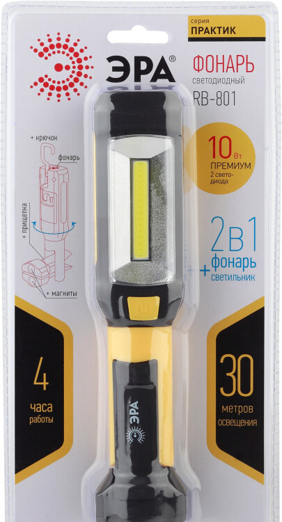 Светодиодный фонарь Практик RB-801 на батарейках магнит крючок прищепка вращающееся основание