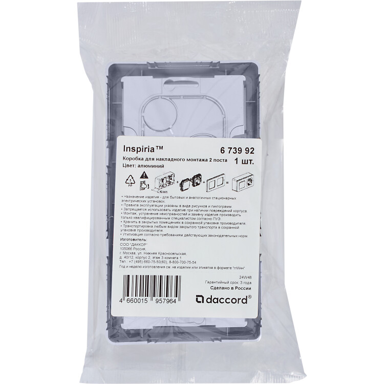 Коробка накладного монтажа 2 поста алюминий INSPIRIA