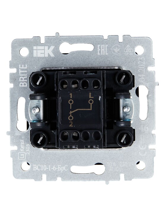 Переключатель 1 клавишный проходной 10А ВС10-1-6-БрС сталь BRITE