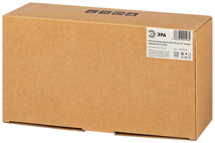 Компьютерная розетка ЭРА RJ-45 категория 5е неэкранированная 2-порта упаковка 30 шт