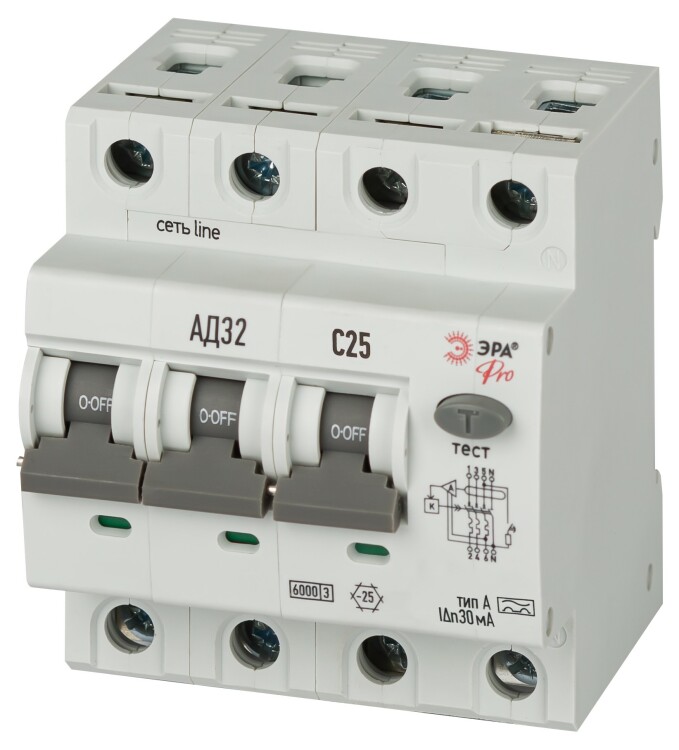 АВДТ 6кА ЭРА PRO D326E4C25A30 АД-32 электронное 3P+N C25 30мА тип A