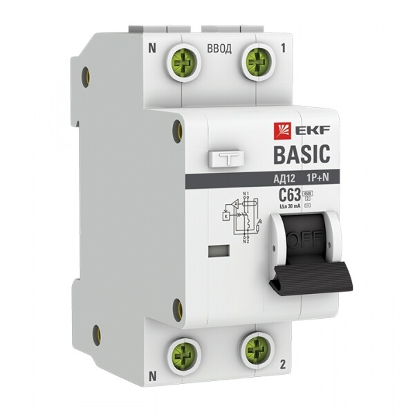 Автомат. выкл. дифф. тока 1P+N 63А 30мА тип АС х-ка C эл. 4,5кА АД-12 Basic