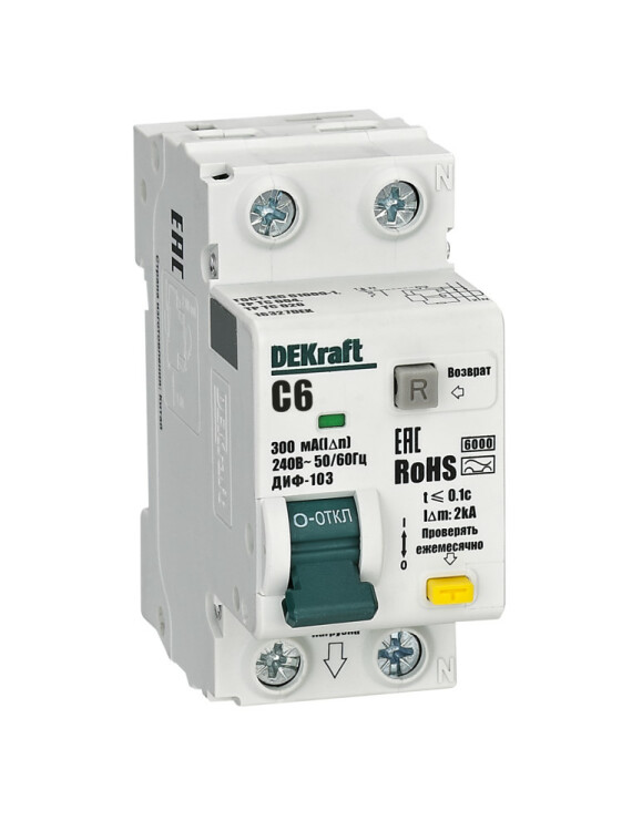 АВДТ 1P+N 6А 300мА AC х-ка C ДИФ-103 6кА