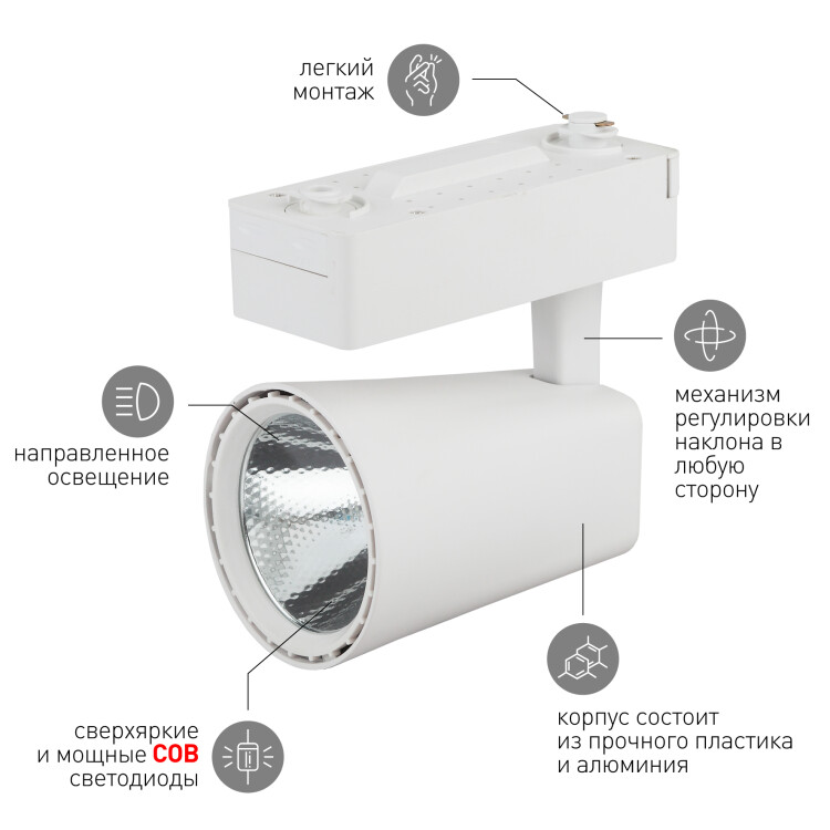 Трековый светильник однофазный ЭРА TR4 - 20 WH светодиодный 20Вт белый COB