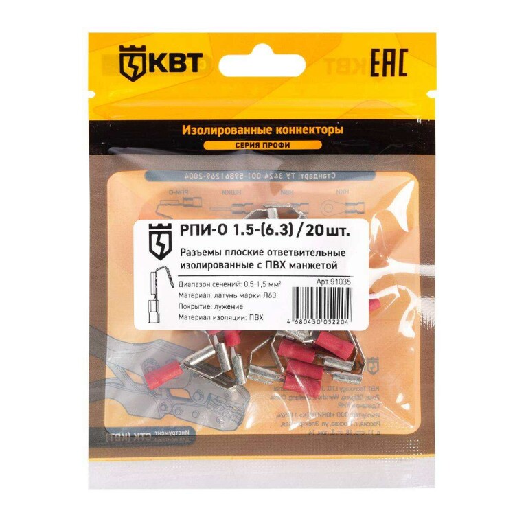Разъем плоский ответвительный изолированный РПИ-О 1.5-(6.3) (20 шт) (КВТ)