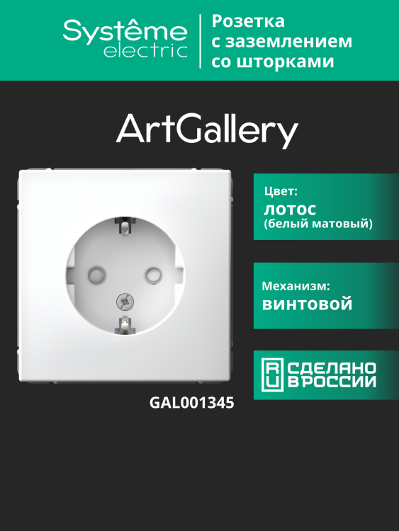 Розетка 2P+E со шторками 16А лотос ArtGallery