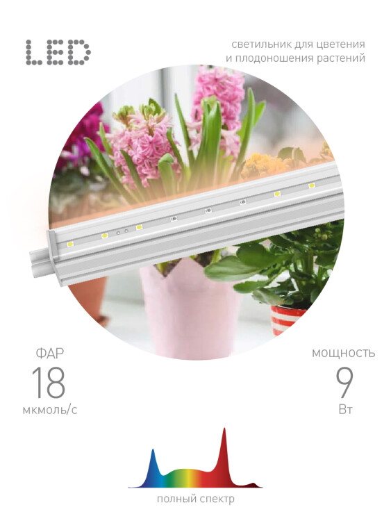 Светильник для растений, фитолампа светодиодная линейная ЭРА FITO-9W-T5-Ra90 полного спектра 9 Вт Т5