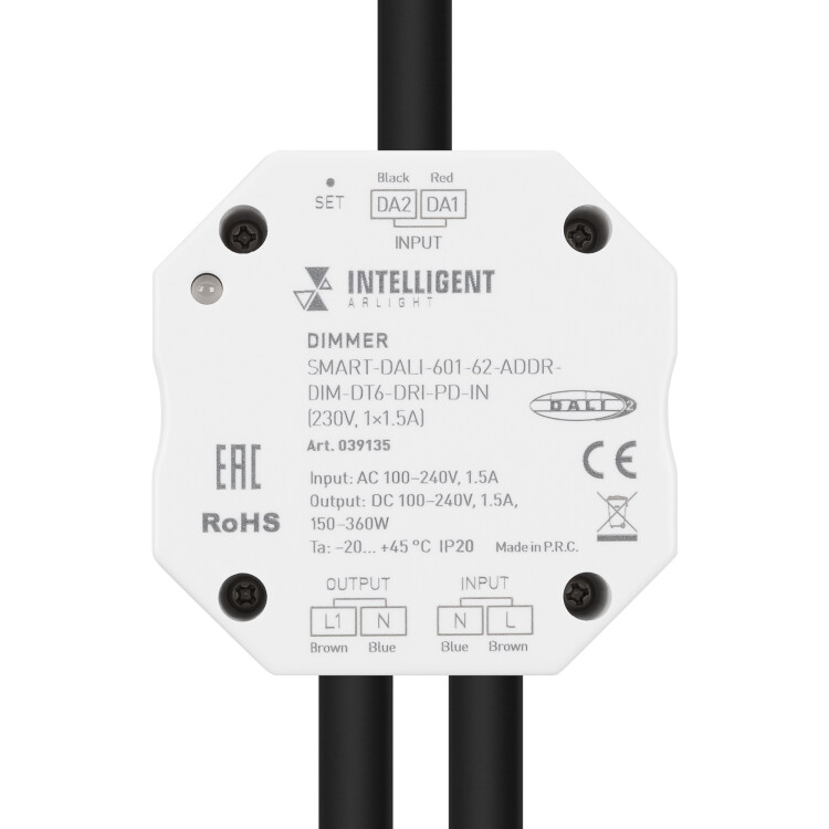 INTELLIGENT ARLIGHT Диммер SMART-DALI-601-62-ADDR-DIM-DT6-DRI-PD-IN (230V, 1x1.5A) (IARL, IP20 Пластик, 5 лет)