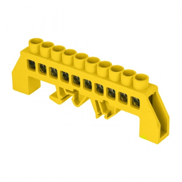 Шина PE "земля" 8х12мм 10 отв. желтый в нейл. корп. комбинир.
