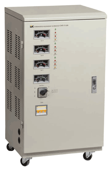 Стабилизатор напряжения трёхфазный, электромеханический, 7500ВА, Uвх=280-430В, точность +/- 3%, напольный, IVS10-3-07500