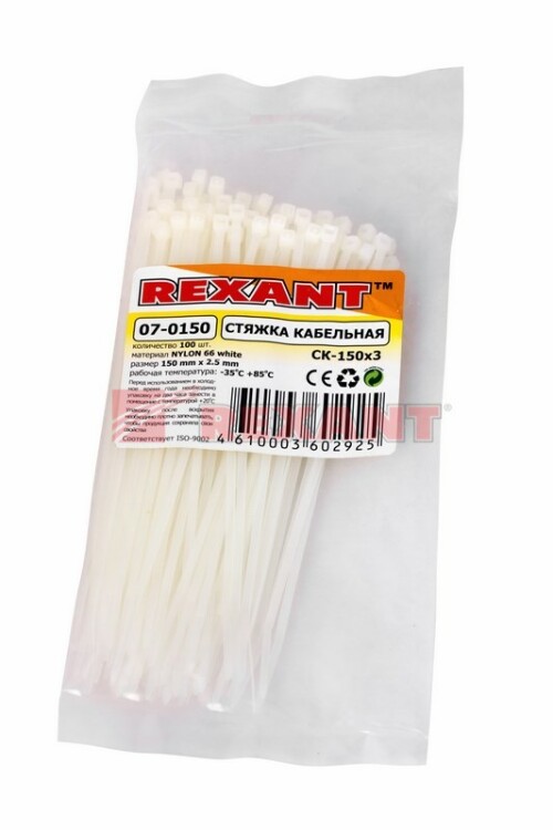 Хомут кабельный полиамид 2,5х150 мм стандартный 6.6 (-35С+85С), белый (упак. 100шт.)
